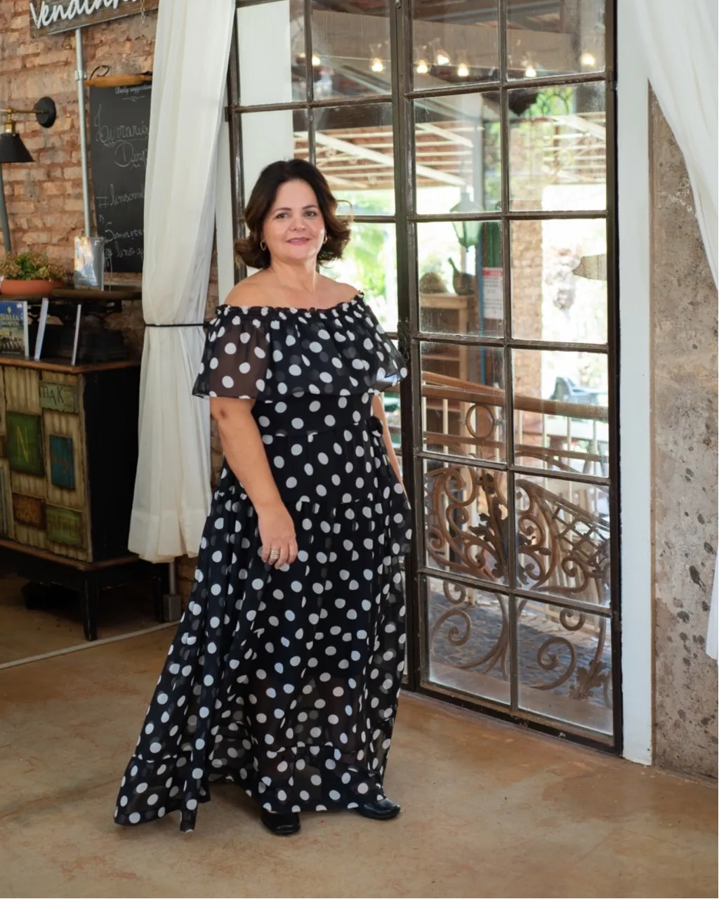 O Vestido Cleide é a peça que você precisa para brilhar em qualquer ocasião! Com composição 100% poliéster, ele oferece um conforto inigualável, ideal para o dia a dia ou eventos especiais.